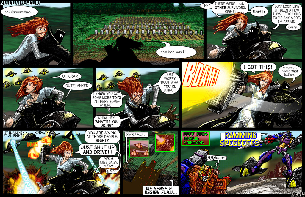 PS. I still need to learn how to plan ahead for dialogue when laying out panels. I hate having to "cross the streams" with word balloons like I had to do in the lower left panel. I hope that scans properly to everyone.